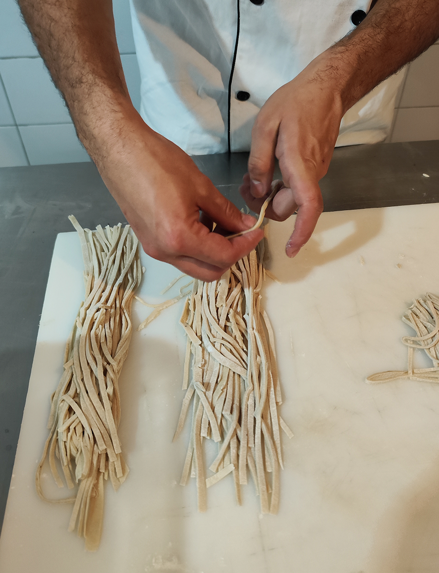 Viva o calor dos caldos tonkotsu, shoyu e miso direto da panela: você extrai sabores desde os ossos, prepara tare e óleos aromáticos, acerta o ponto do macarrão, finaliza chashu e ajitama e monta bowls equilibrados. Estações individuais, correção imediata do sensei e foco em mise en place garantem padrão de cozinha profissional.
