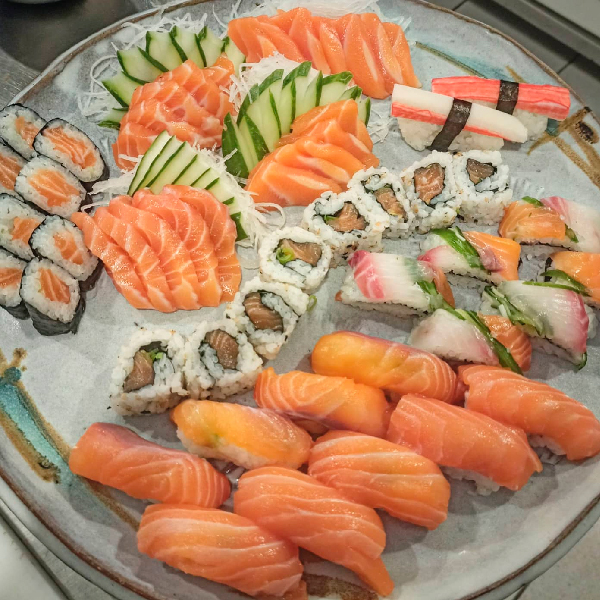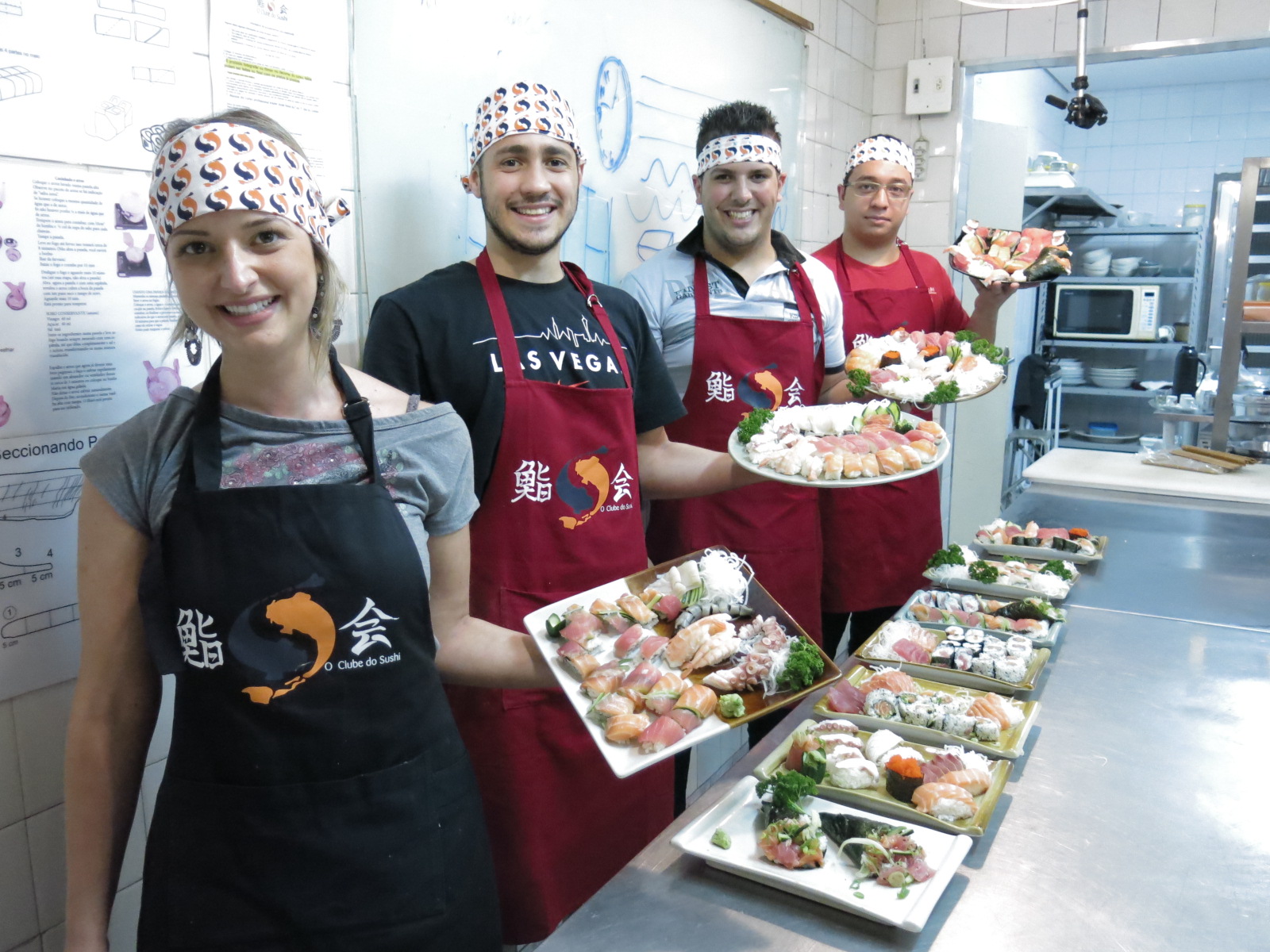 Salmão. Nesse curso o aluno aprende a fazer os cortes corretos para recheios e coberturas no filé de peixe e a fazer todos os tipos de sushi: Nigirizushi, Makizushi (hosomaki e Uramaki e Temaki) e também sashimi.